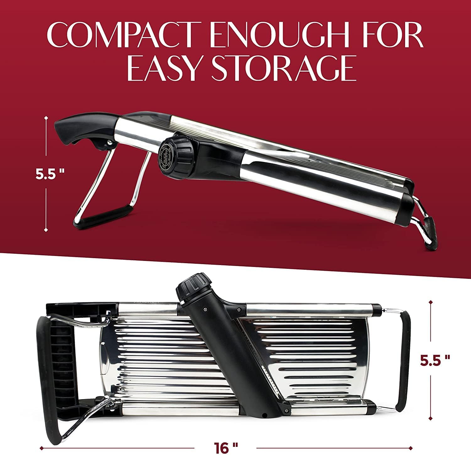 - Adjustable Blades: This mandoline shredder, slicer has an adjustable blade that allows you to slice vegetables and fruits at different width.
