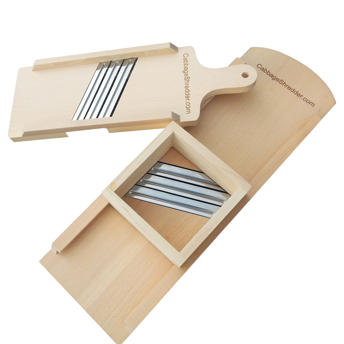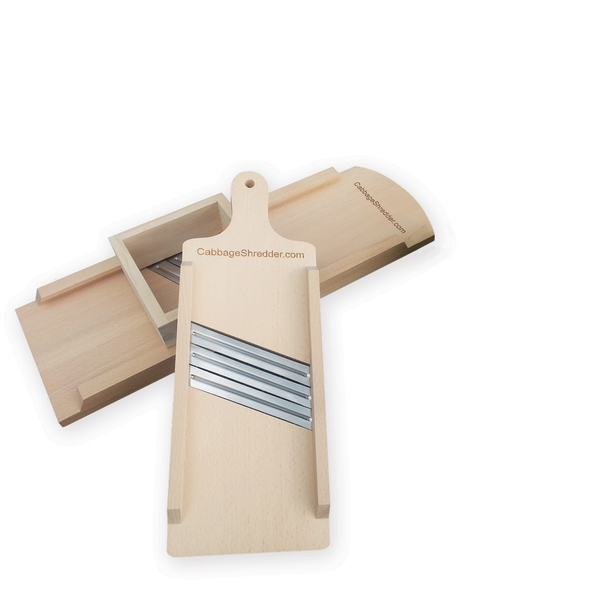 Our wooden shredders are produced in Poland ( Europe), the homeland of sauerkraut. The traditional design has stood the test of time for generations. They are made of beech wood, known for its super-durability and resistance to water. The wood does not stain or warp, even after prolonged exposure to water, and it requires no chemical treatment. The blades are made of stainless steel and they are extremely sharp, ensuring fast and effortless shredding. All our wooden cabbage shredders come with a lifetime limited warranty.(please see our terms of service to find out more)